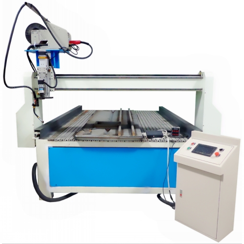 2、整個橫梁的前后位移由伺服驅(qū)動,沿著安裝在床身兩側(cè)的直軌和齒條平穩(wěn)進退。在橫梁的邊柱上裝有“停/啟”按鈕,方便員工在焊接過程中發(fā)現(xiàn)異常時能及時停車,解決問題后立馬可啟動繼續(xù)自動焊接。